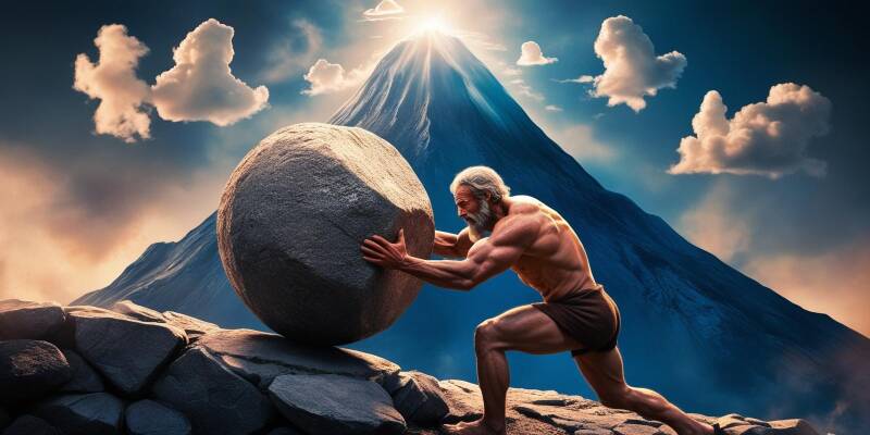 Sisyphus was condemned to push a giant rock up a tall mountain.